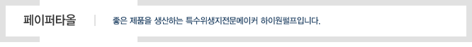 세수 후 손에 물기를 닦거나 기름기나 오물을 닦아내는 제품의 용도 특성상 물에 녹거나 해지지 않도록 강한 습강처리를 한 원지를 사용합니다.